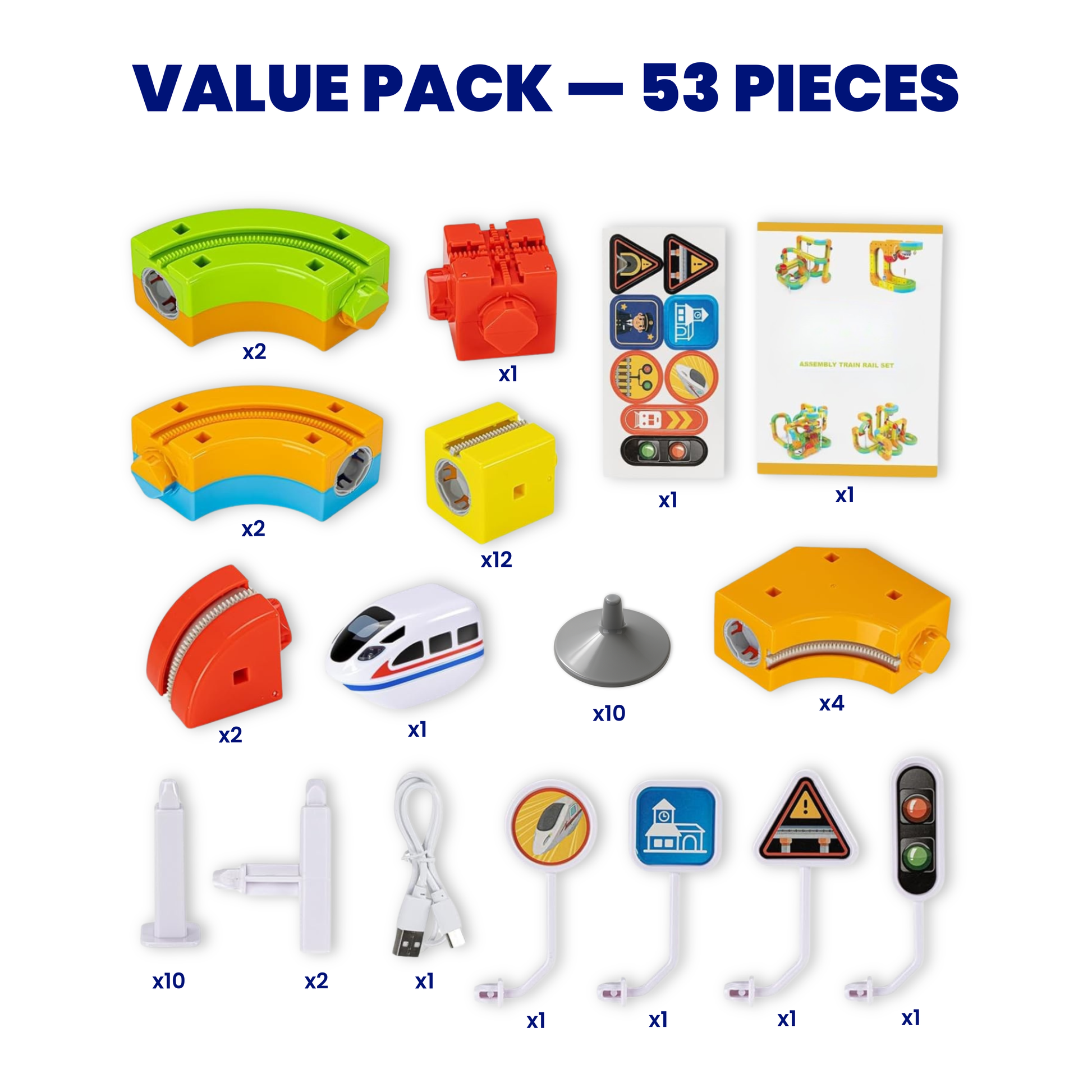 The 35PCS is a starter set, many families later upgrade since kids often want to design more complex shapes. The Value & Deluxe sets are ideal for creating longer tracks that allows for kids to be entertained for longer playtime.