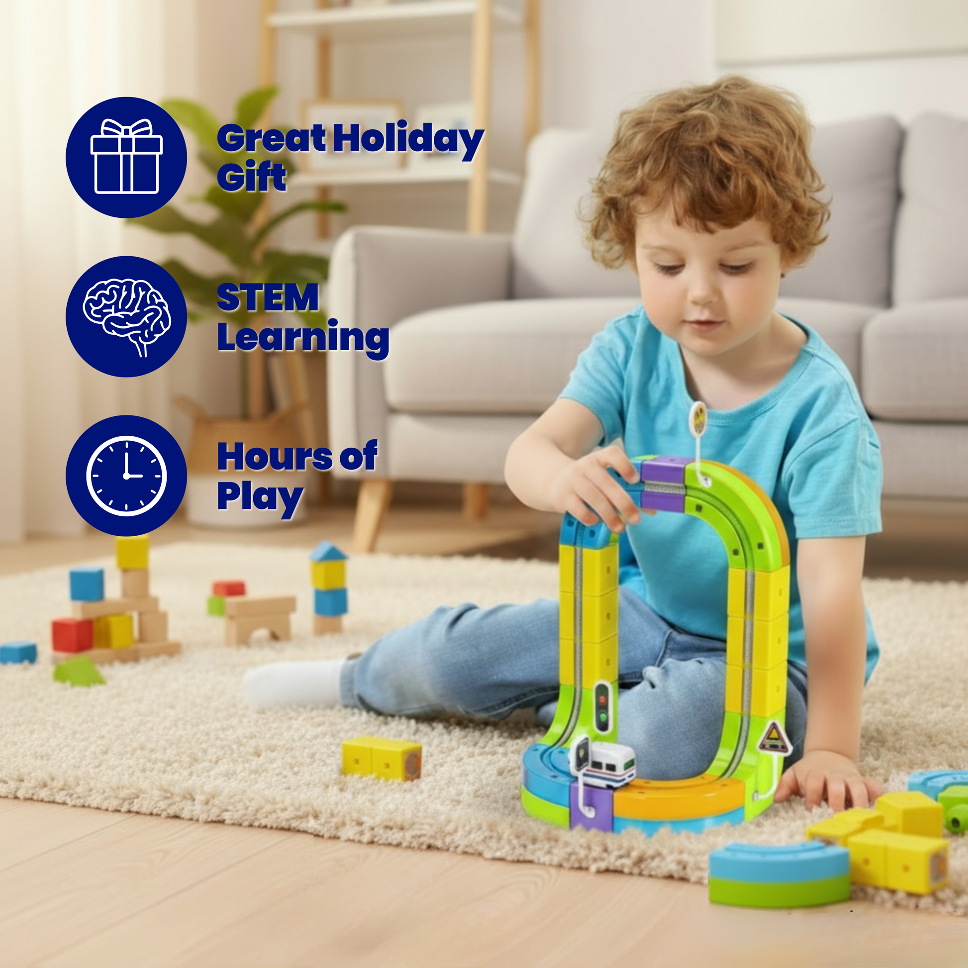 Our advanced clip-fit system makes building tracks simple and allows kids to play independently